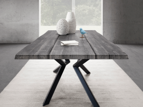 Bow представляет собой приятное сочетание двух материалов: дерева — дуба или ясеня, с помощью которого создаются полосы для формирования двух ножек стола вручную, и каменной столешницы (керамика/мрамор) необычной формы благодаря закругленным углам.