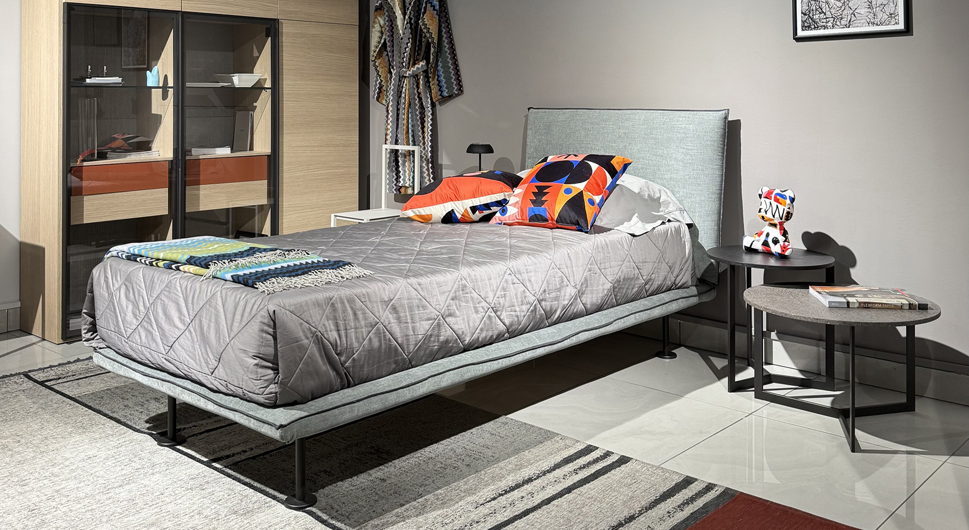Кровать без подъемного основания изготовлена из качественной ткани и имеет мягкое изголовье. Отделка кровати выполнена аккуратно, обрамляя ее контуры и придавая ей изысканный вид.