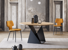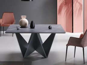 Стол с четкими линиями, похожими на современную скульптуру, имеет прямоугольный топ, доступный в различных вариантах отделки (дерево, стекло, керамика/мрамор). Вариант из дуба с узлами, заполненный смолой демонстрирует всю красоту натурального дерева. Доступен в раздвижной версии.