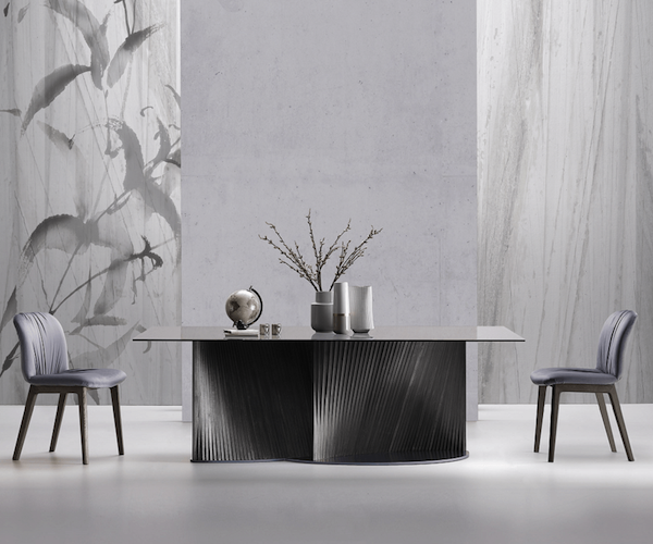 Основа этого оригинального стола образована двумя «волнами», которые, кажется, создают образ нежных лепестков цветка. Мягкие линии ножки стола для поддержки массивной столешницы, которая доступна в версии из закаленного стекла или керамики/мрамора.