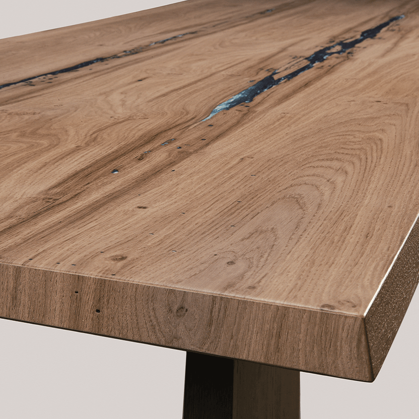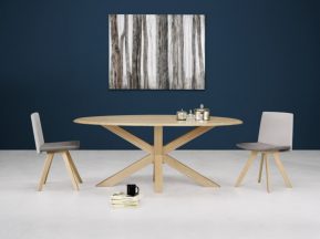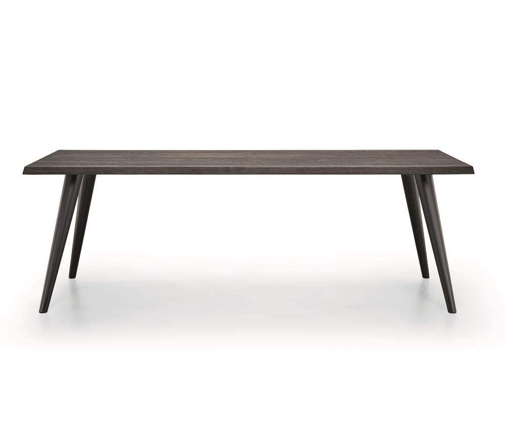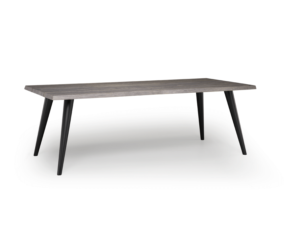 Лаконичный стол в современном стиле с деревянными лакированными ножками в трех цветах. Столешница из цельного дуба или сосны в различных оттенках.