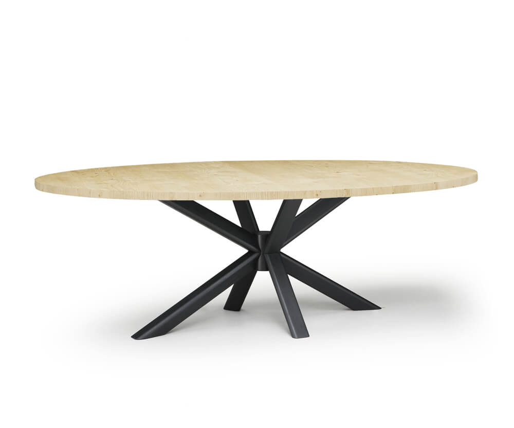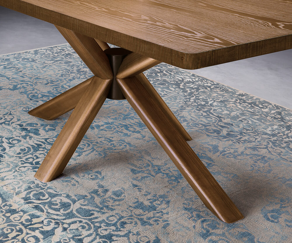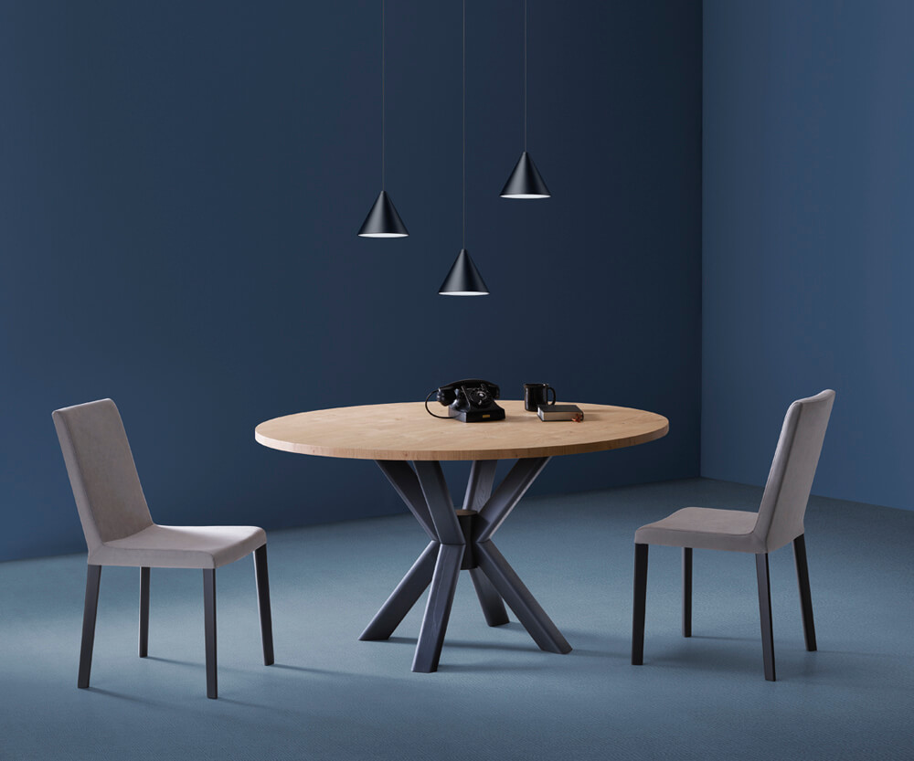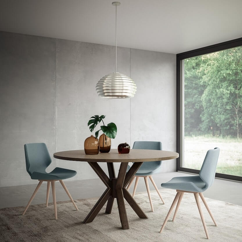 Овальная, прямоугольная или круглая столешница, изготовленная из стекла или шпона, опирается на хорошо сбалансированное основание с оригинальным дизайном. Стол также доступен в сложной версии из массива дуба.